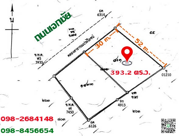 รูปแปลง : สี่เหลี่ยม กว้าง 30 x ลึก 52 เมตร โดยประมาณ