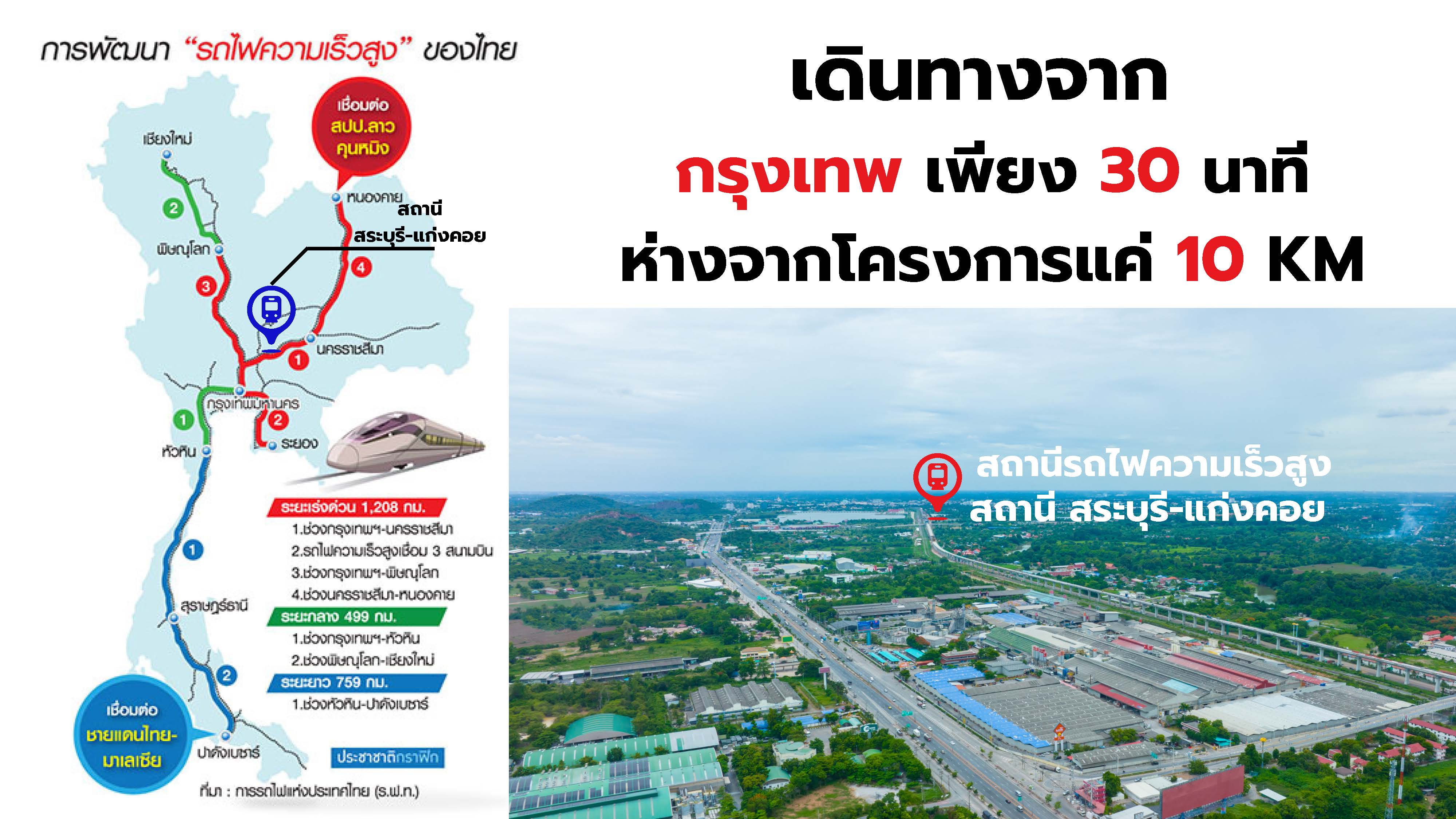ที่ดิน เดินทางถึง สถานีรถไฟความเร็วสูง แก่งคอย-สระบุรี การคมนาคมต่าง ๆ ดีขึ้น และเปลี่ยนไปค่ะ